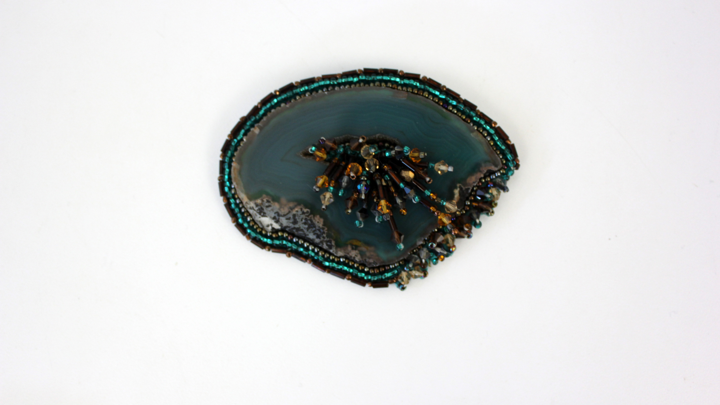 Join jeweler Carole Horn for this afternoon-long, hands-on workshop on embroidering necklaces using glass beads. Taking inspiration from the works on view in the exhibit Maryland to Murano: Neckpieces and Sculptures by Joyce J. Scott, students will create glass beaded embroidery arounda gemstone or geode slice. The resulting work will channel the colorful personality of each student in a one-of-a-kind wearable wonder.
