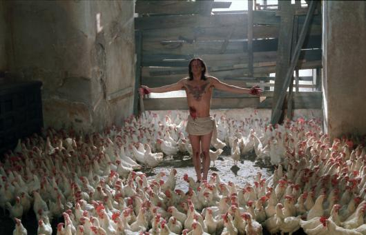 Made in 1989 and set in Mexico, Santa Sangre is Jodorowsky’s deepest foray into complex, surrealist horror genre. Co-written with Claudio Argento (brother of Dario), it tells the story of a young “child magician” Fenix (played by Axel Jodorowsky, Alejandro’s son), who witnesses his father carry on an affair with another circus performer, and in a later confrontation, cuts off his mother’s arms. Starting as a show-act, the mother and son team perform with Fenix’s limbs emerging from the armless sleeves. It soon becomes apparent that his mother can control his limbs as her own, and the Fenix kills several women his mother has determined to be a threat. Unfolding in a set of flashbacks and flashfowards, the film is a story of perverse and brutal acts in a fractured family. As a "horror film, [it is] one of the greatest,”the critic Rogert Ebert has written, adding that it demonstrates “true psychic horror is possible on the screen--horror, poetry, surrealism, psychological pain and wicked humor, all at once.”