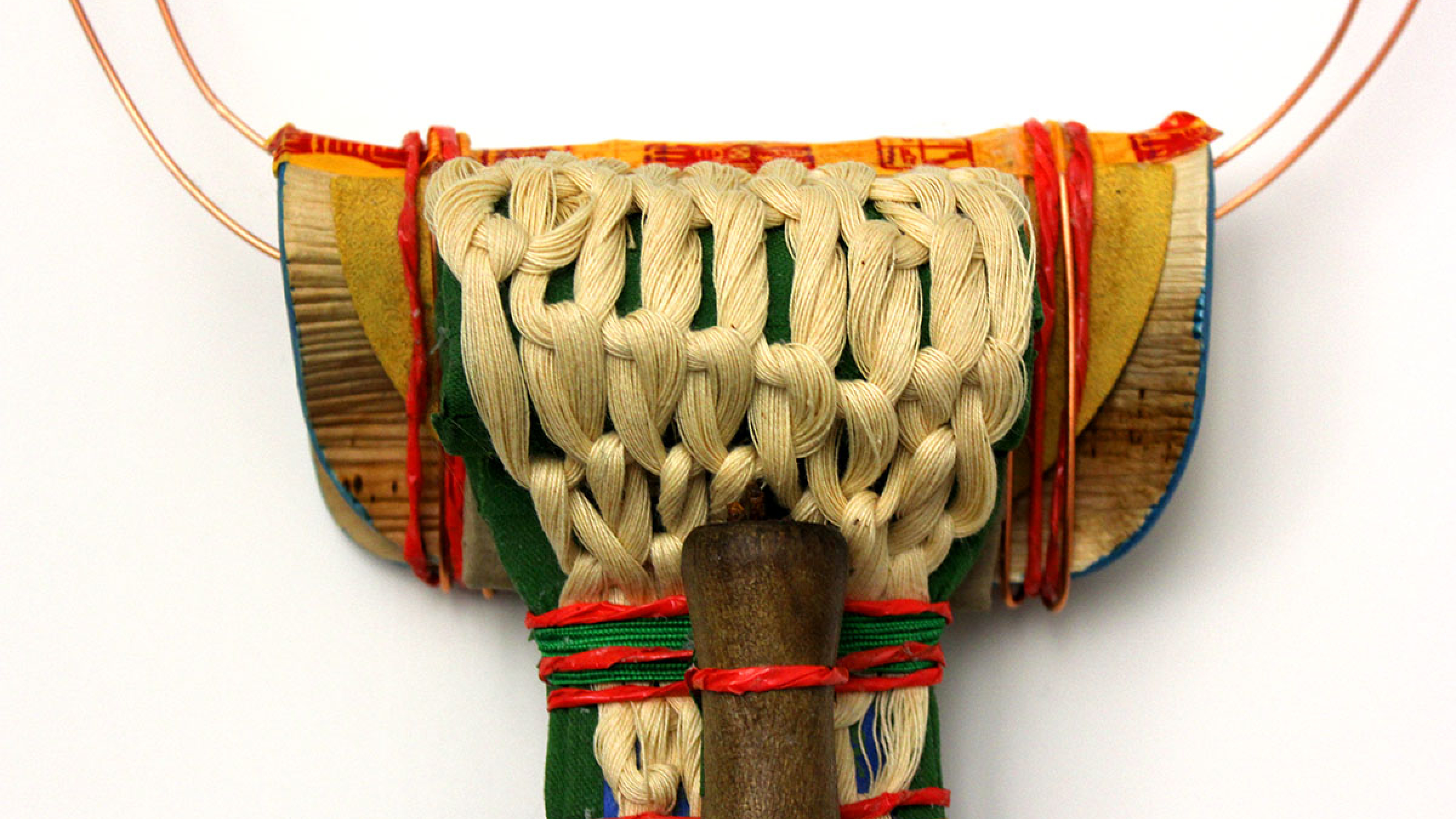 Join fiber artist Debra Rapoport for an afternoon-long, hands-on workshop using knotless netting to create a pendant or necklace from bamboo yarn, silk and other materials. A fabric-creating technique that predates knitting and crochet, knotless knitting, also known as Nålebinding, creates a stretchy fabric using short lengths of yarn and a single-eyed needle. Women of the Nanti tribe and indigenous people of the Camisea region of Peru practice this unique technique today. Taking inspiration from the works on view in the exhibition New Territories: Laboratories for Design, Craft and Art in Latin America, this workshop teaches the novice and expert alike how to adapt this historically rich technique to create their very own contemporary fashion accessory.