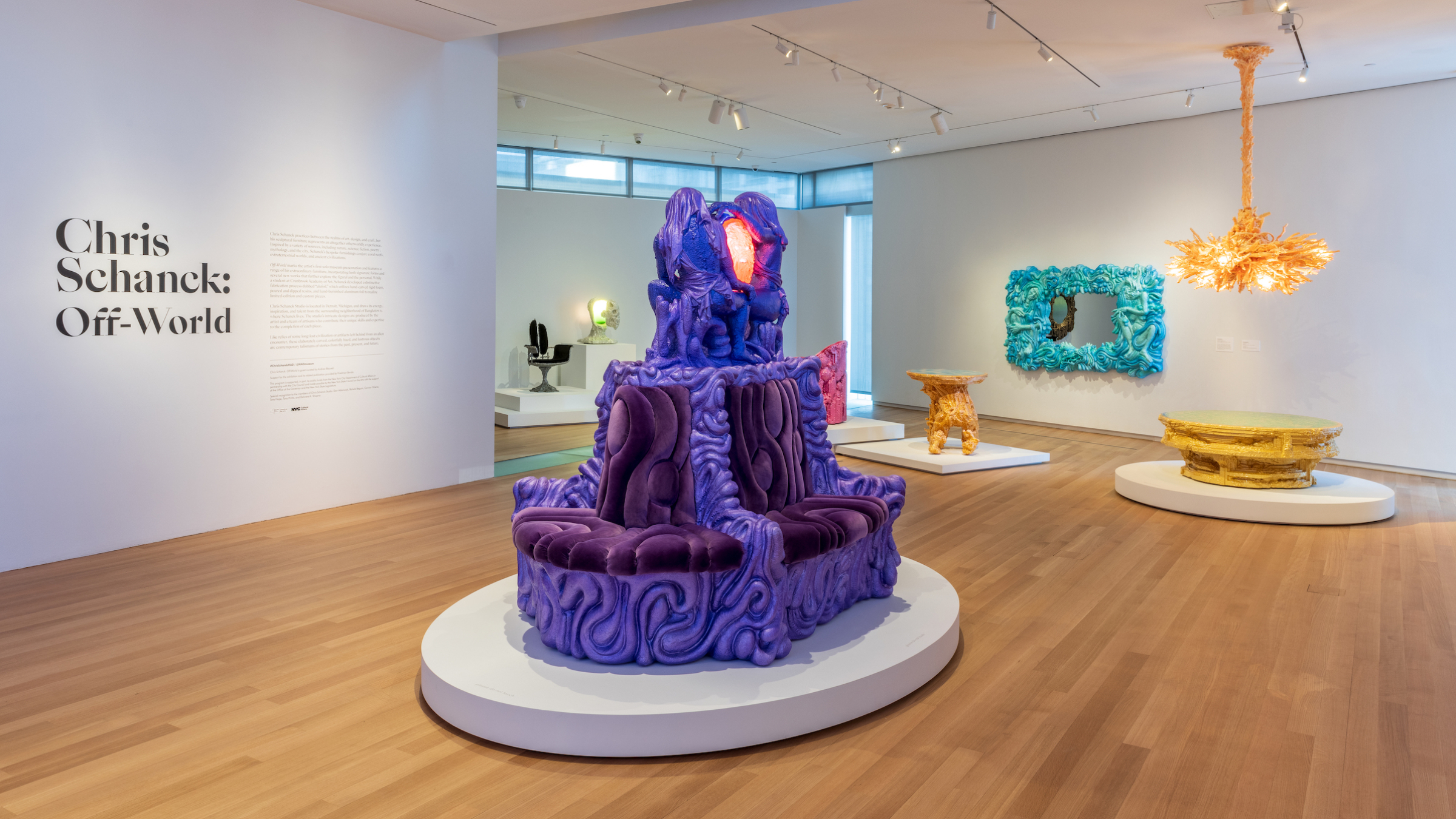 During the past decade, Chris Schanck has emerged as a leading figure in the design world for his otherworldly fusion of sculpture and furniture. Skirting the line between refinement and camp, the strange, unfamiliar forms of Schanck’s chairs, sofas, lighting, mirrors, and more suggest coral reefs, extraterrestrial worlds, and artifacts from ancient civilizations, to name just a few of the designer’s inspirations. Each piece is meticulously handcrafted in Schanck’s Detroit-based studio, a community of artists, students, and Bangladeshi craftspeople who all make key contributions to the studio's collective practice. Deftly melding innovative material experiments with an expressive yet rigorous refinement of form, Schanck’s elaborately carved, colorfully hued, and lustrous objects are contemporary talismans of stories from the past, present, and future.