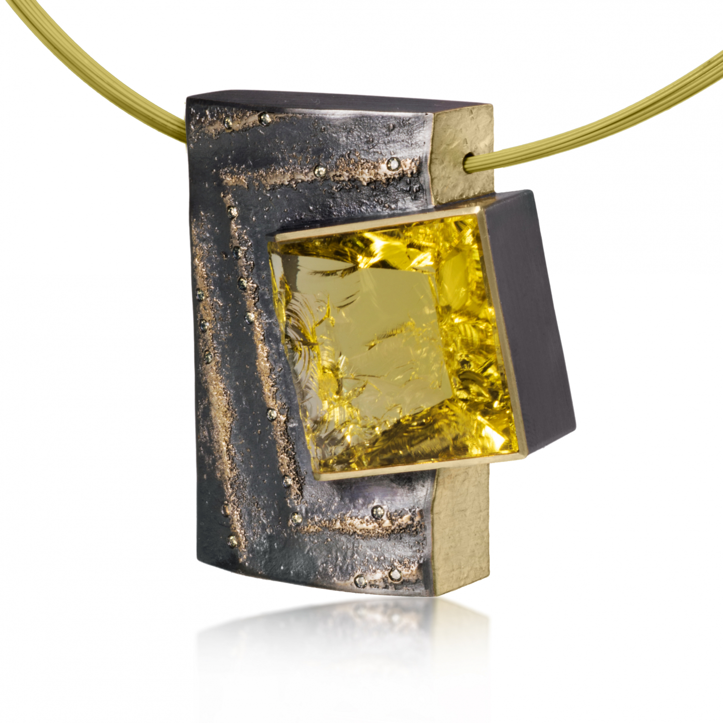 New York–based artist Elizabeth Garvin makes strong, feminine wearable objects that express her interest in natural sciences, geology, and metallurgy. Made with gold, silver, semiprecious stones, and diamonds, her designs are inspired by natural geometry and rendered with a distinctly Modernist sensibility. Garvin has developed proprietary processes that imbue each piece with a bold signature style; her approach to structure and mechanics has an elegant fluidity, instilled and nurtured by her father, an architect and engineer. She runs her studio like a small atelier of artisans, combining the oldest traditions of jewelry making with the newest technologies, fresh ideas, and unique skills. Her approach to metalsmithing draws from a wide range of thought and imagery, process and vision, incorporating studies of dance, music, painting, sculpture, film, and photography.