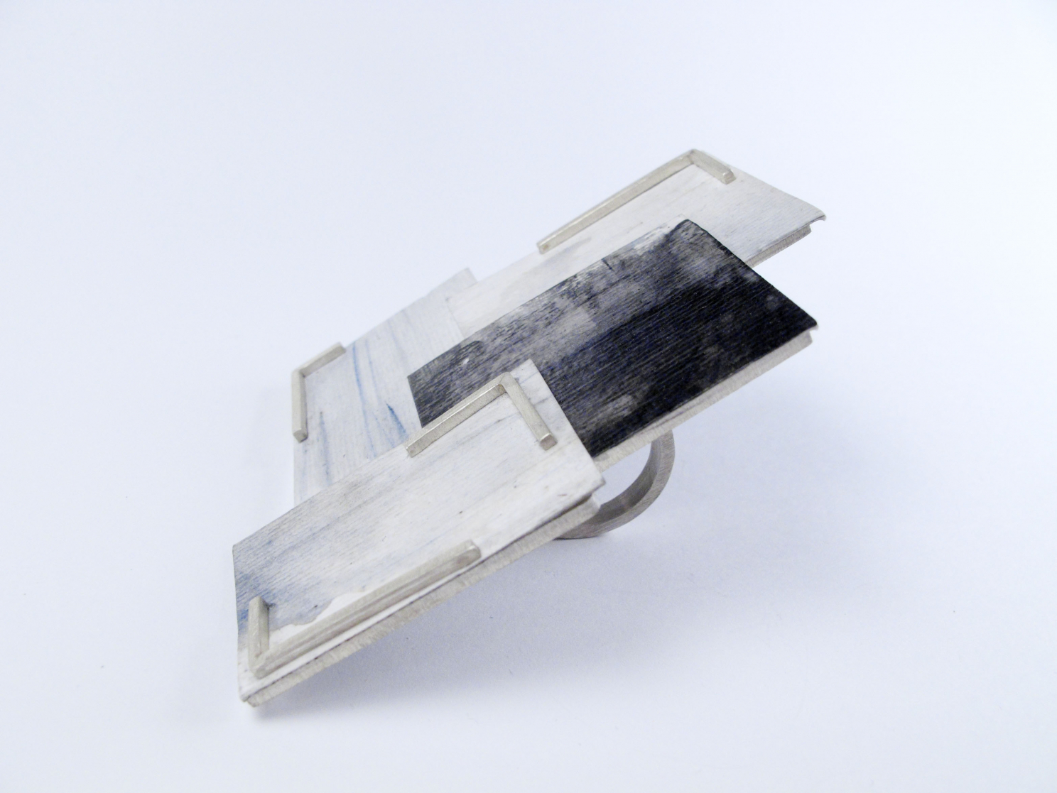 Spanish designer Iraia Aizcorbe creates jewelry that expresses elegance and strength. She works with geometric shapes, combining straight lines and curves in the belief that existence is rooted in the balance of opposites. Through her jewelry, she seeks to convey beauty and harmony. Her “Encounters” collection connects paper—her first love—with her current passion, metal, in the form of lightweight silver structures.
