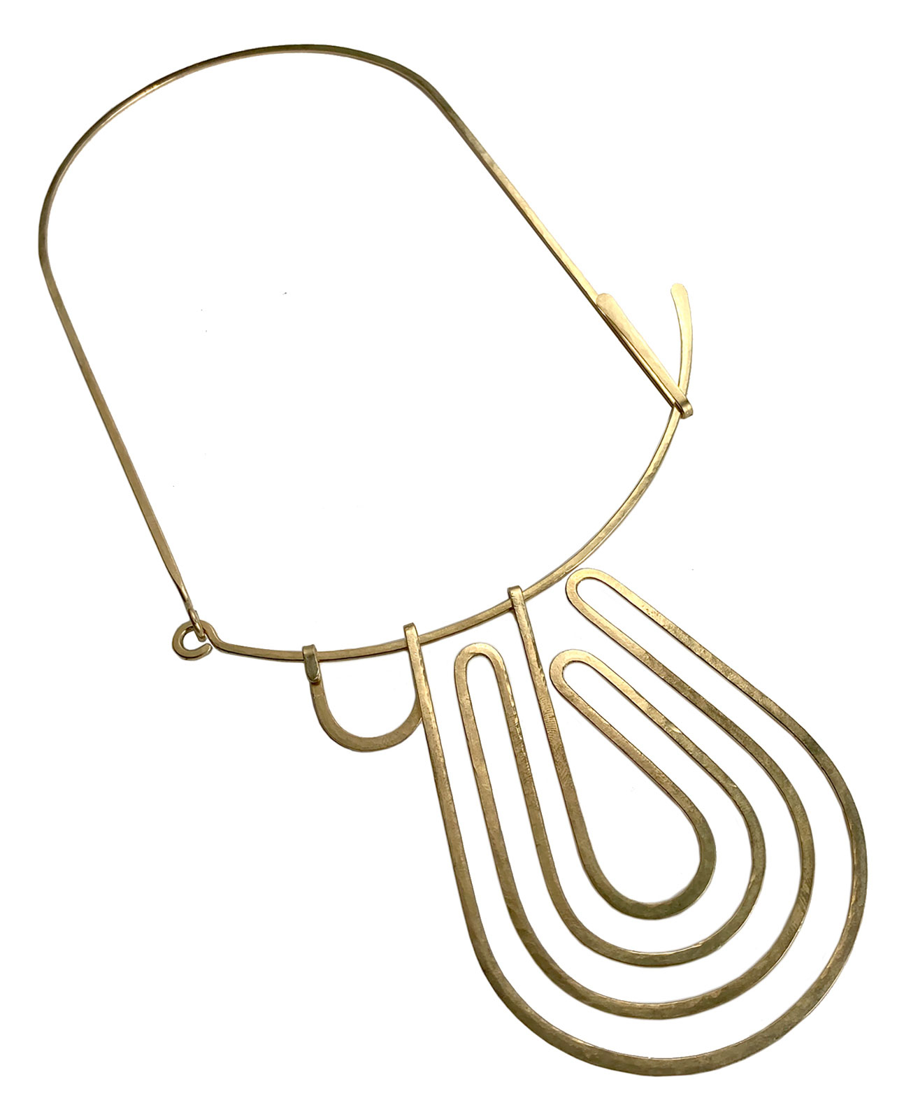Born in Brooklyn, Rodger Stevens is a sculptor and jewelry maker based in New York. His exploration of jewelry began during a residency at the Museum of Arts and Design, after he decided that the space would be inhospitable to the large-scale sculpture that was typical of his practice. Made with brass wire, his jewelry is rooted in a formal language developed over a lifetime of drawing and more than twenty years of working with linear materials. Though abstract in appearance, each of his pieces draws its imagery from, and is intended to embody fragments of, personal experience, literature, mathematics, human physiology, and other sources of deep interest to the artist. In addition to maintaining a full-time art practice, Stevens teaches at the Parsons School of Design.