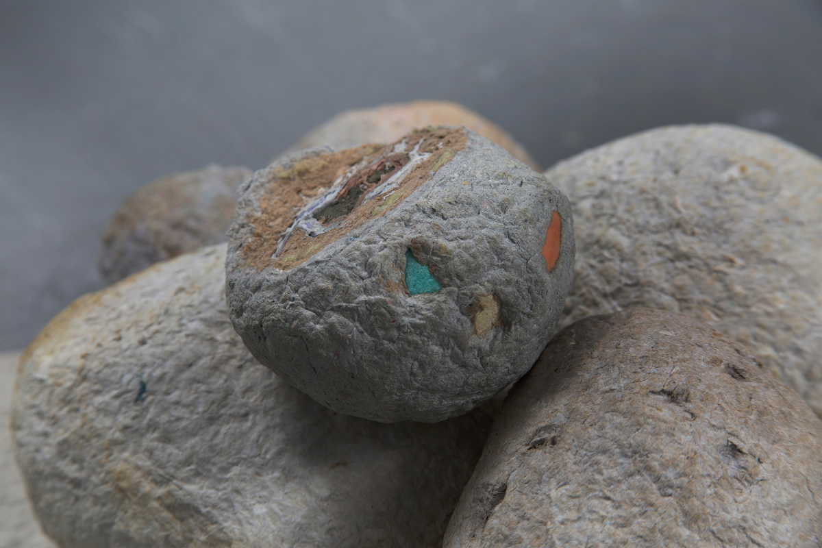 In the MAD Artist Studios, Tubbs is exploring a project derived from oceanic observation. Stepping Stones are sculptural rock formations made of trash and waste materials inspired by plastiglomerate, a new geological term used to describe the fusion of micro plastic, rock, sand, basalt, coral and wood discovered last year on Hawai‘i Island. Tubbs will be combining the forms to make larger pieces before he cuts into them to reveal their hidden complex layers.